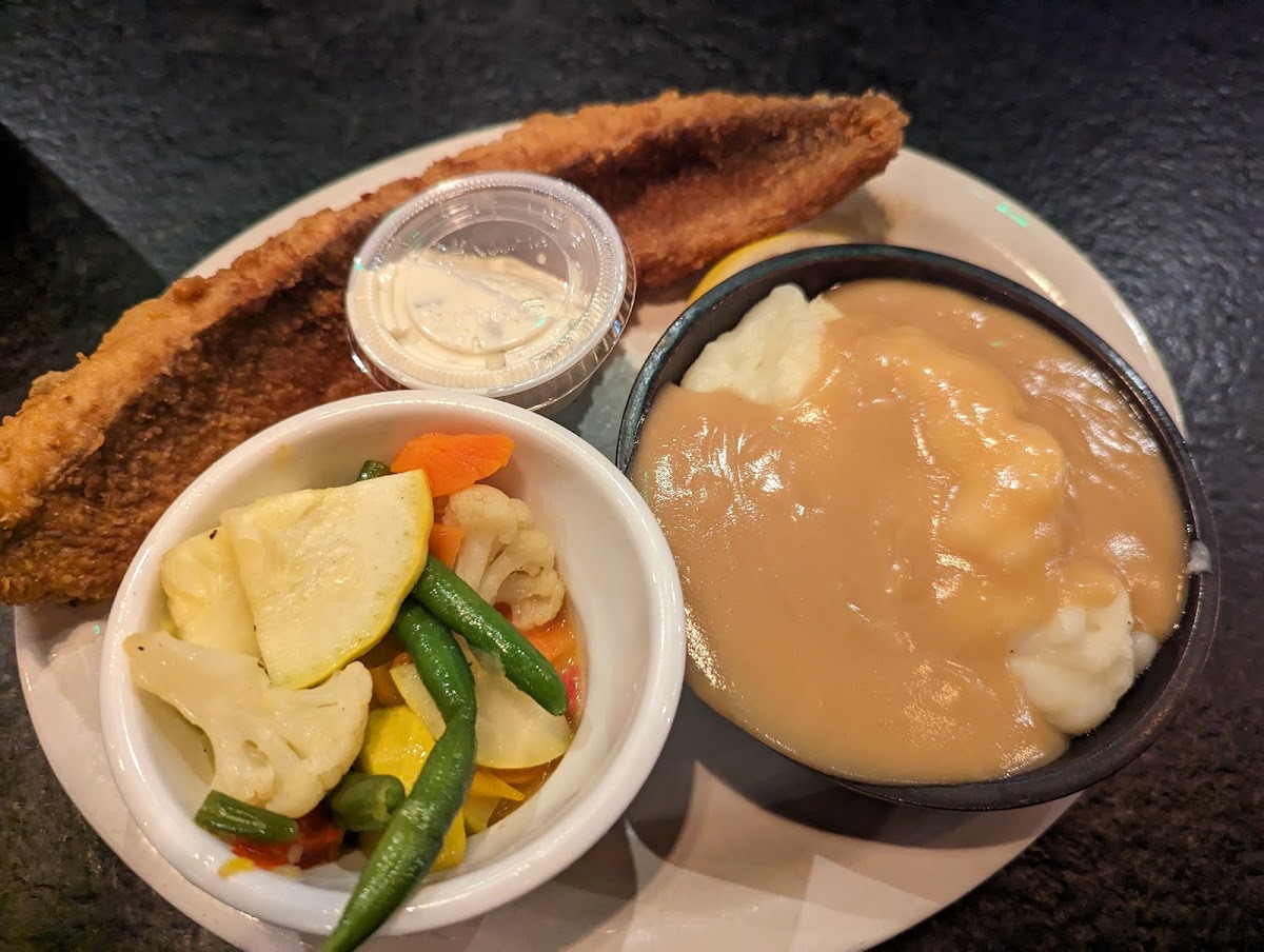 The food was good. We went in for appetizers. Very disappointed in the small selection of appetizers to choose from. Deep fried mushrooms and onions were something we were expecting and some of the previous starters. We both ordered root beer. When we didn't get the root beer we asked another server. She told us they don't have root beer. I don't understand why our service didn't tell us at the time. Bring some bottled root beer in!