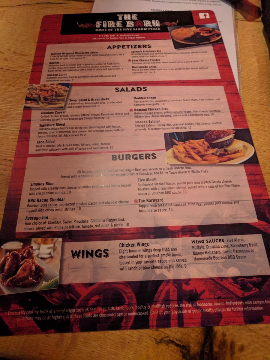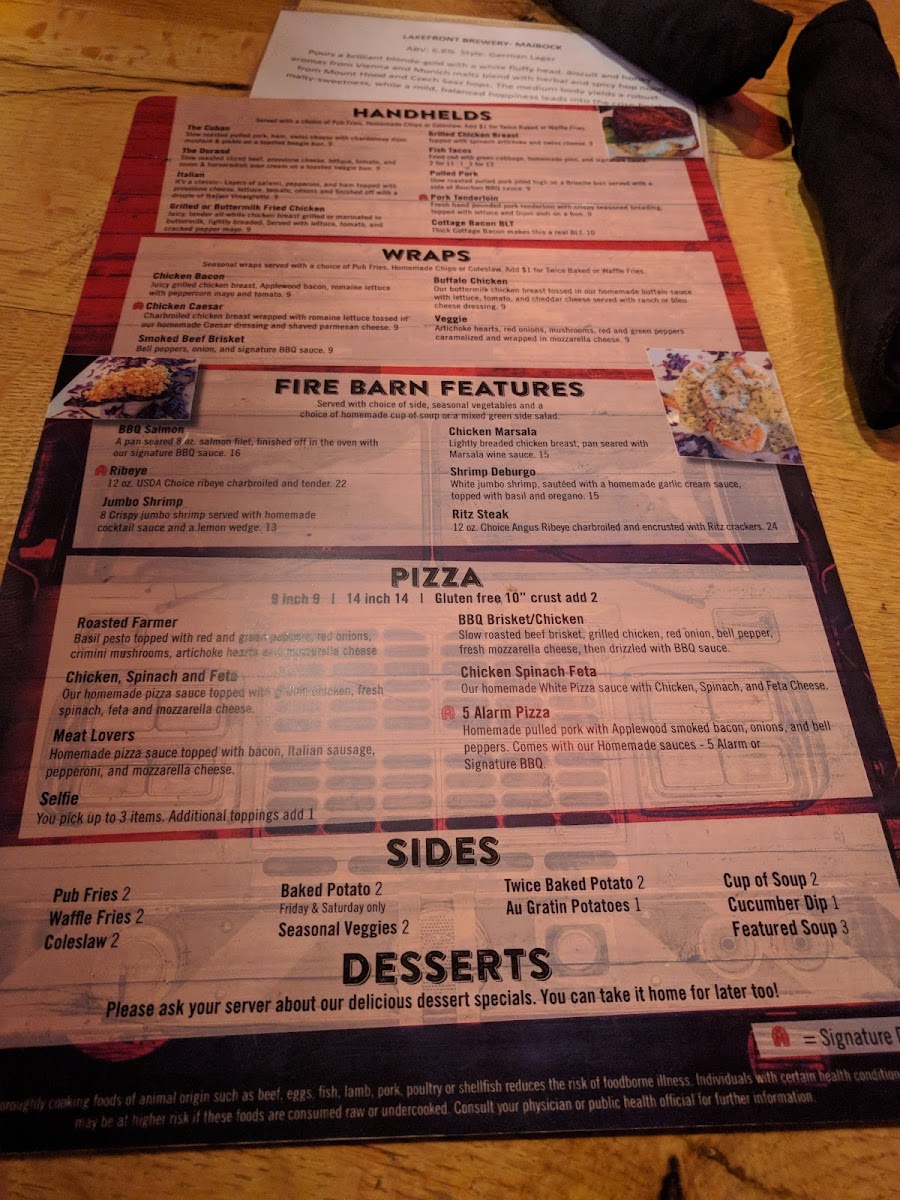 The Fire Barn’s menu offers a relaxed blend of classic bar and grill favorites crafted for easy, satisfying meals. You’ll find a range of options that suit everything from midday lunches to casual dinners and weekend gatherings, all served in a welcoming, down-to-earth setting. The menu balances hearty, familiar dishes like pulled pork and the Barn Burger with lighter choices such as grilled salmon and shrimp tacos.